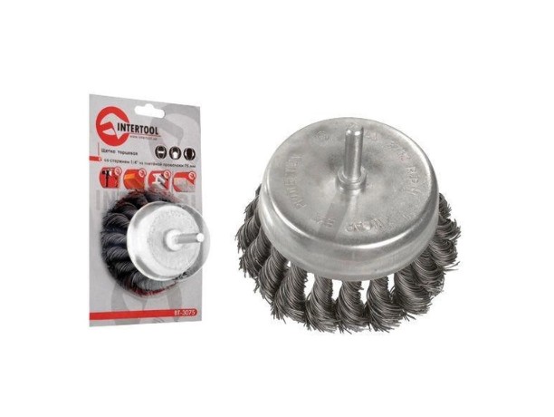 Щітка чашкова INTERTOOL BT-3075 75 мм для дриля, 1/4" (пучки витого дроту)