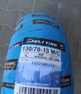 Безкамерна покришка виробництва Індонезія Deli Tire у розмірі 130/70-13 на моторолері з маркуванням малюнка протектора SC-109 . Ця шина є безкамерною, але можна ставити і в комплекті з камерою. Якісна покришка для скутера з дорожнім малюнком забезпечить надійну їзду та максимальне зчеплення на різних типах доріг. Застосовується на різні моделі японських і китайських скутерів з діаметром диска 13 дюймів
