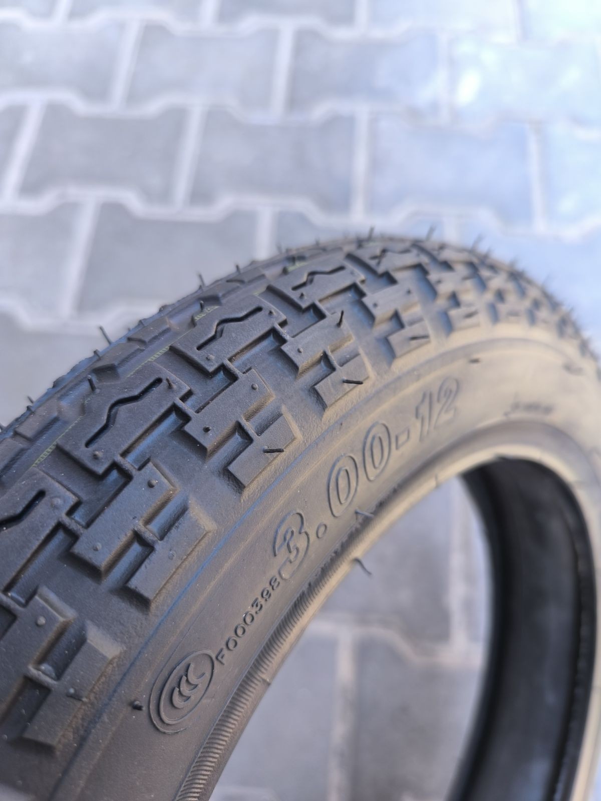 Пневматична шина розміру 3.00-12 (80/90-12) з камерою підходить для встановлення на передню або задню вісь скутерів та мопедів, тачки, візка, які використовують 12-дюймові колеса. Завдяки базовому 4-шаровому каркасу (4 PR) і максимальному навантаженню до 175 кг ця модель ідеально підходить для міського та сільського використання.