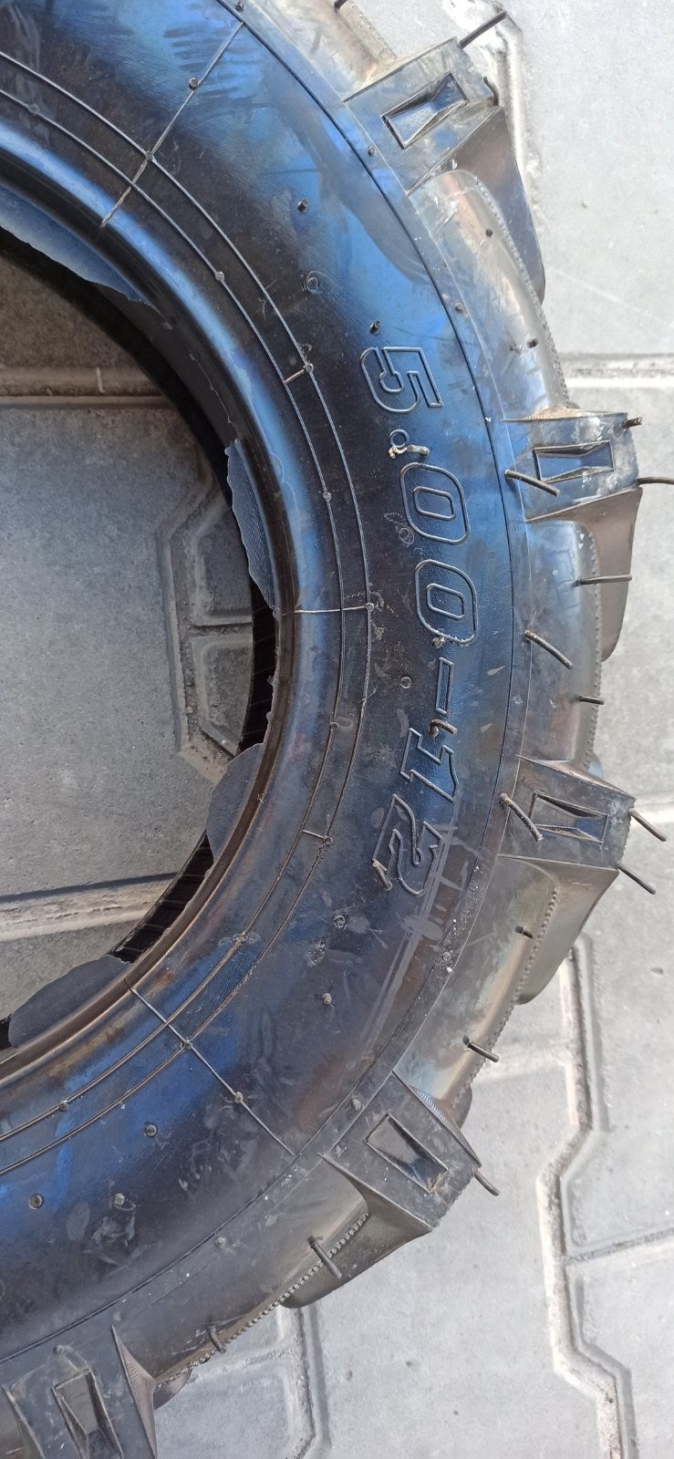 Шина для мотоблока 5,00-12 ". У комплектацію входять гумова покришка з камерою. Протектор шини підвищеної прохідності відмінно підходить для робіт на грунті і перевезення вантажів.