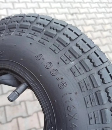 Покришка 4.00-6 ВС 6PR, на садову тачку, вантажопідйомністю 100 кг, не сохне на сонці, так як зроблена з додавання каучуку, а не сажі або вторинної сировини.
