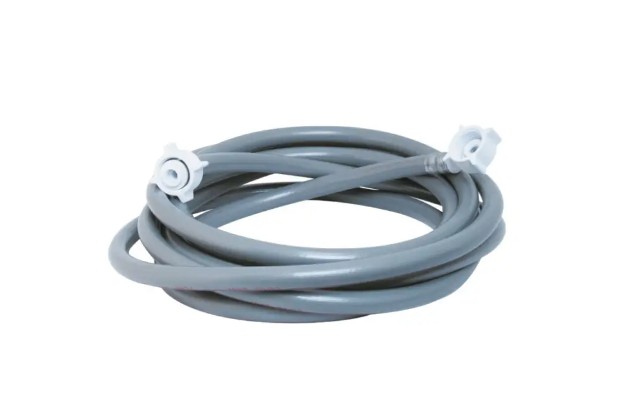 Заливний шланг виготовлений з посиленого ПВХ і призначений для підключення посудомийних і пральних машин до водопроводу. Для зручного підключення до пральної чи посудомийної машини на шлангу накидні гайки і з одного боку кут під 90°. У комплект входять гумові прокладки.