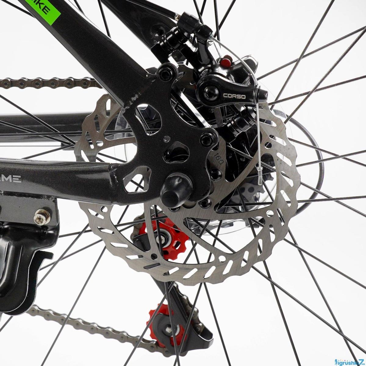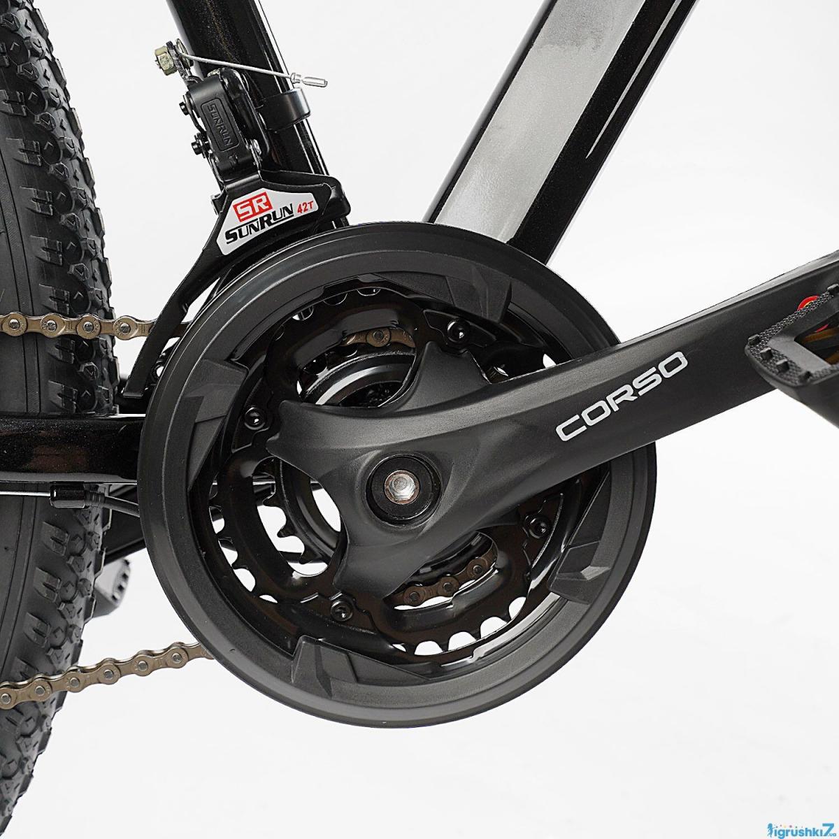 Cпортивний велосипед Corso має міцну раму, комфортне сидіння має ергономічну форму, що забезпечує максимально зручне їзду, ця модель має подвійні посилені ободи, для паркінгу передбачена складана підніжка.