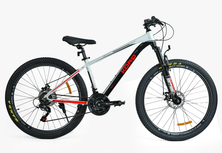 Спортивний велосипед Corso Kord - Цей спортивний велосипед має колесами 27,5 дюймів , забезпечуючи відмінне зчеплення з поверхнею для плавного та впевненого руху. З його міцною алюмінієвою рамою розміром 15,5 дюйма ви зможете добувати вершини гір і підкорювати траси поза дорогами.
