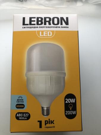 Світлодіодні лампи ТМ Lebron - сучасне джерело світла, в якому зібрані останні технології. LED лампа Lebron L-А80, 20W, Е27, 6500K, 1800Lm - ефективний і економічний вид освітлення з гарантійним терміном служби в 1 рік.
