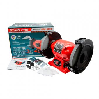Точильний верстат Start Pro SBG-550S призначений для роботи з заточуванням і шліфуванням ріжучого інструменту, зняття фасок, видалення задирок і т. д., Комплектується двома абразивними кругами діаметром 200 мм. Точильний верстат оснащений асинхронним двигуном потужністю 550 Вт який здатний розвивати 2950 об/хв і пылезащещенной кнопкою включення.
