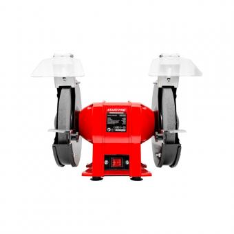 Точильний верстат Start Pro SBG-600F призначений для роботи з заточуванням і шліфуванням ріжучого інструменту, зняття фасок, видалення задирок і т. д., Комплектується двома абразивними кругами діаметром 200 мм. Точильний верстат оснащений асинхронним двигуном потужністю 600 Вт. який здатний розвивати 2950 об/хв. і пылезащещенной кнопкою включення. Для безпеки оператора кола поміщені в спеціальні металеві захисні кожухи, які знімаються у разі необхідності заміни диска. Наявність захисних стекол також свідчить про підвищеної безпеки, а упори роблять робочий процес більш комфортним. Корпус даної моделі швидко охолоджується завдяки чому можливо проводити роботу тривалий час.