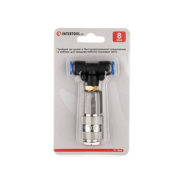 Трійник на шланг 8мм шланг та швидкороз'ємне з'єднання до набору для продувки кабіни вантажних авто INTERTOOL PT-1868