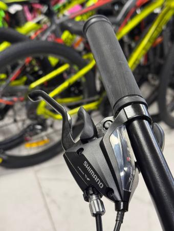 Міцна алюмінієва рама 17 дюймів гарантує надійність і довговічність конструкції. Обладнання Shimano з 21 швидкістю дає змогу легко перемикатися між передачами, забезпечуючи комфортний рух як на рівних ділянках, так і на підйомах або спусках.