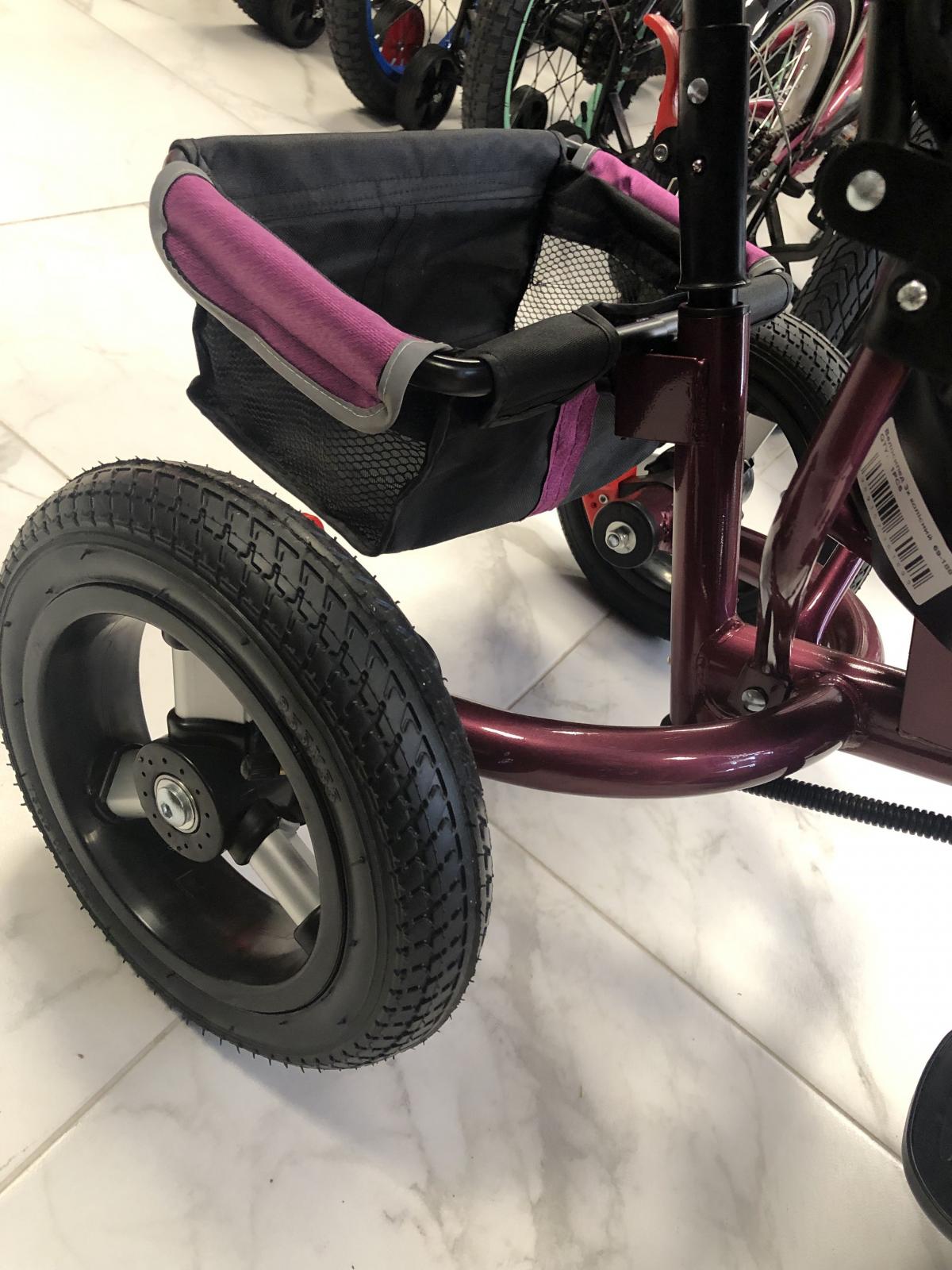 Колеса у цієї моделі надувні з протектором, що дозволяє дитині не відчувати нерівності дороги.