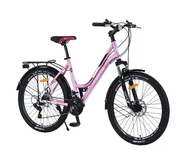 Велосипед Forte Evrikа, який призначений для їзди дорогами із переважно рівним покриттям. Велосипед складений на базі міцної рами, матеріалом для виготовлення якої виробники вибрали сталевий сплав. На раму встановлена вилка жорсткого типу, завдяки якій набирати високу швидкість на рівних дорогах буде набагато легше, зручне зігнуте кермо, великі 26-дюймові колеса з вузькими, «накатистими» покришками й алюмінієвими протиударними ободами.