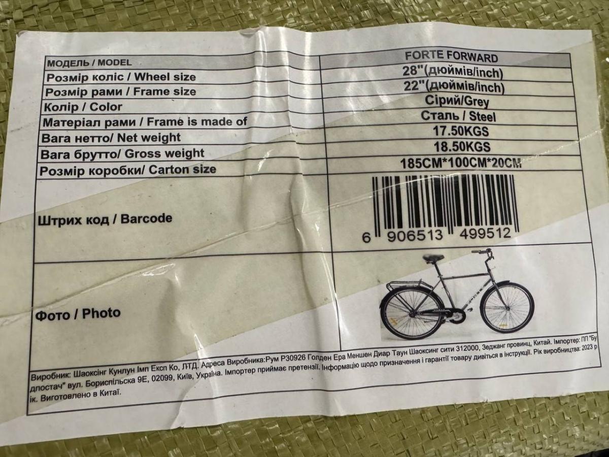 Оснащення: укомплектований багажником, крилами, кожухом ланцюга та дзвоником.