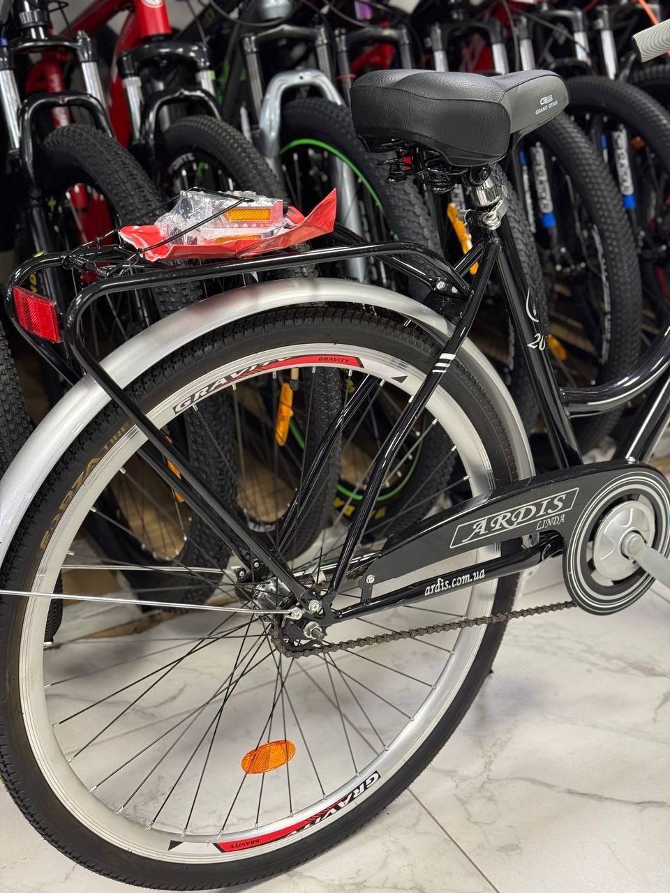 Велосипед ARDIS LINDA 28 – елегантна модель для міських прогулянок. Конструкція рама цього байка дозволить вам впевнено кататися навіть у спідниці – і вітер не перешкода. Ви зможете з витонченістю сісти або зістрибнути з велосипеда, не чіпляючи подолом нижню частину рами або педалі. Амортизоване сідло забезпечить додаткову м'якість при з'їзді з бордюрів чи нерівних поверхонь. Обідні гальма, встановлені на цій моделі, мають просту, але надійну конструкцію. Винос керма передбачає встановлення гаджетів, які можуть бути корисними у будь-якій поїздці (велокомп'ютер, дзвінок, ліхтарик). Перемикачі від Shimano та 21 швидкісний режим дозволять швидко підібрати потрібний режим катання. Завод виробник залишає за собою право вносити зміни в конструкцію та зовнішній вигляд велосипеда без попередження. Повну інформацію про товар уточнюйте у продавця.