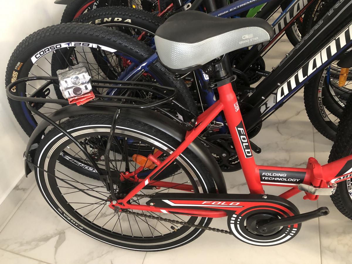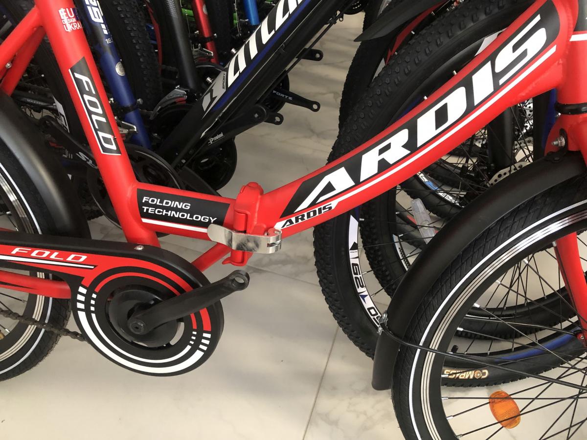 Надійний велосипед Ardis Fold, який ви легко зможете зберігати у квартирі та перевозити в машині й громадському транспорті. Завдяки сталевій рамі, модель вийшла дуже міцною. Рама обладнана простим і надійним механізмом складання, завдяки якому швидко скласти велосипед зможе навіть дитина. Велосипед обладнаний ножним заднім і ручним переднім гальмом. Також на велосипеді є крила, які не дадуть вам забруднитися, й міцний багажник.