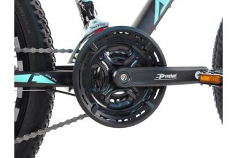 Компоненти трансмісії розраховані на 21 швидкість за формулою 3х7 – три попереду 32Т із захистом від влучення одягу та сім провідних зірочок на тріскачці 14-28Т позаду. Таке співвідношення дозволяє зручно перемикатися між різними рівнями складності на дорозі або поза її межами. Задній перемикач Shimano RD-TY21. Каретка картриджного типу з міцним сталевим валом, пиловологозахищена.