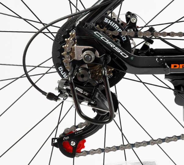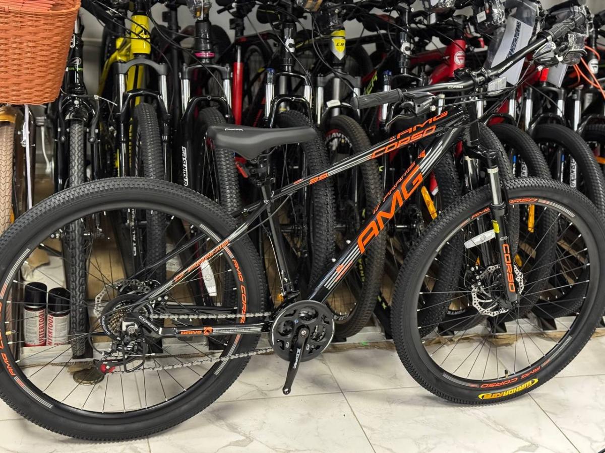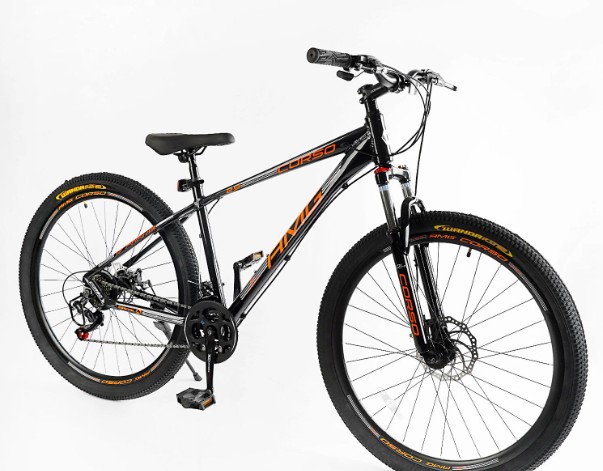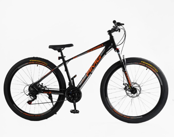 Велосипед Спортивний 29" Corso «AMG» Чорно-помаранчевий, рама алюмінієва 17``, обладнання Shimano 21 швидкість