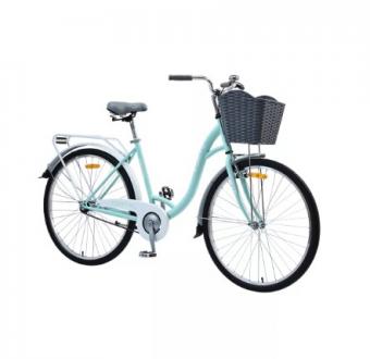 Велосипед Forte Danfa з металевою рамою має діаметр коліс 28" і виконаний в блакитному кольорі.