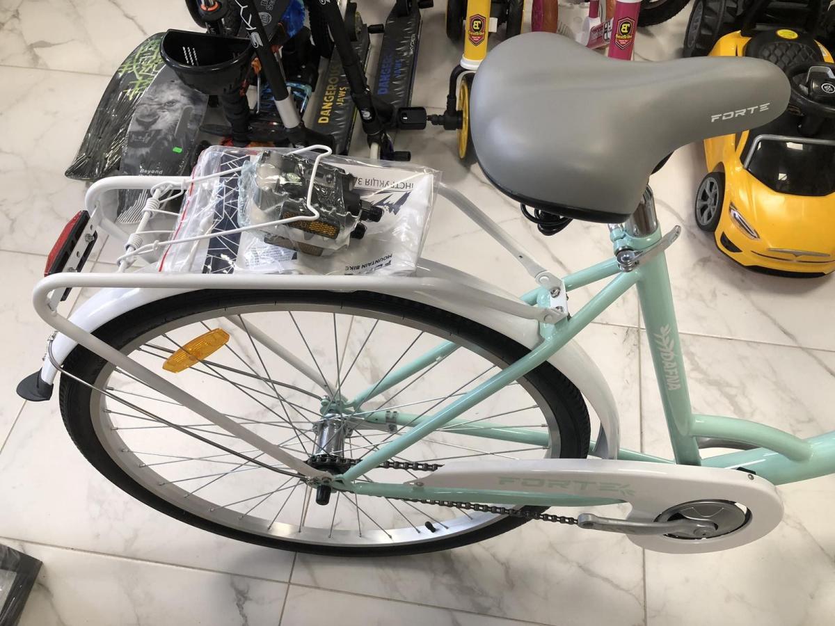 Якісний жіночий велосипед 28 Forte Danfa. Рама виготовлена зі сталі в класичному дизайні. Діаметр коліс 28 дюймів забезпечує хороший накат і прохідність велосипеда по нерівностях. Велосипед укомплектований якісною гальмівною втулкою та картриджем на промислових підшипниках у каретковому вузлі. Передні обідні гальма безвідмовні в будь-яких ситуаціях та погодних умовах. Для перевезення ручної поклажі та дрібних вантажів велосипед укомплектований кошиком та багажником. Повномірні сталеві крила забезпечать захист у вологу погоду. Комфортна та сучасна геометрія рами, якісні компоненти, відмінне складання та неповторний дизайн не залишить байдужими власника велосипеда.
