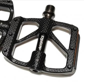 Надійні велосипедні педалі MySpace JTB-012 на промислових підшипниках. Мають міцний, повністю алюмінієвий литий корпус, широкий майданчик із шипами забезпечує гарне зчеплення із взуттям, міцна вісь із хром-молібдену та промислові підшипники гарантують якісну та довговічну роботу педалей. Колір чорний. Використання: MTB. Розмір: 95 х 75 х 17 мм. Кількість промислових підшипників: 2 шт. Запаковані в коробці.