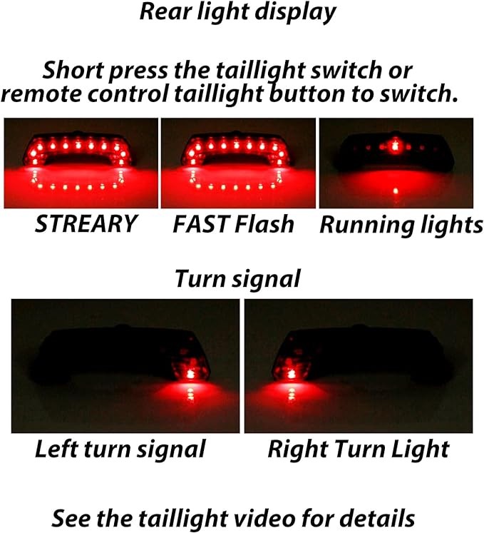 Задні ліхтарі: 11 яскравих намистин, 5 режимів освітлення, USB-зарядка, літієва батарея 220 мАг.