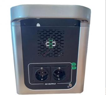 Вихід зміного струму Загальна потужність 1000 Вт (пікова 2000Вт. 05.с) 100В-110В 60 Гц чиста синусоїда (3х розетка США) або 220В-240В 50 Гц чиста синусоїда (2х євророзетки)