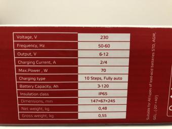 Інтелектуальна система діагностики стану та рівня заряду АКБ дозволяє не тільки підібрати оптимальний режим зарядки, а й підтримувати батарею у стані повного заряду. Електронний захист від перевантаження, короткого замикання та неправильного підключення (зворотна полярність) убережуть ваш акумулятор та зарядку від пошкоджень та зламання.