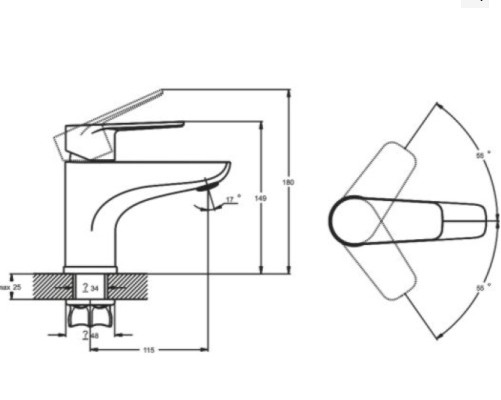 Кріпиться до умивальника з допомогою монтажної гайки.