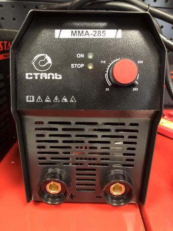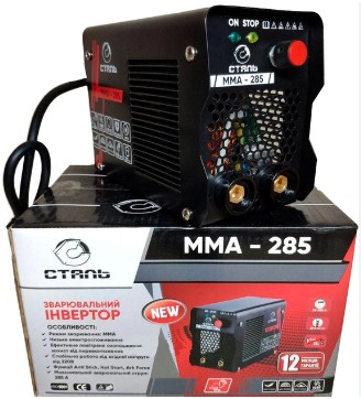 Інвертор Сталь ММА-285 варить постійним струмом і може використовувати електроди діаметром від 1,6 до 5,0мм. Дана модель здатна працювати навіть при зниженій напрузі мережі від 180В. Зварювальний струм регулюється в межах від 20 до 285А. Серед відмінностей даної моделі, хотілося б відзначити захист від перевантаження, пуск з гарячого стану, захист від прилипання електрода, а також високу надійність конструкції і витривалість у роботі.